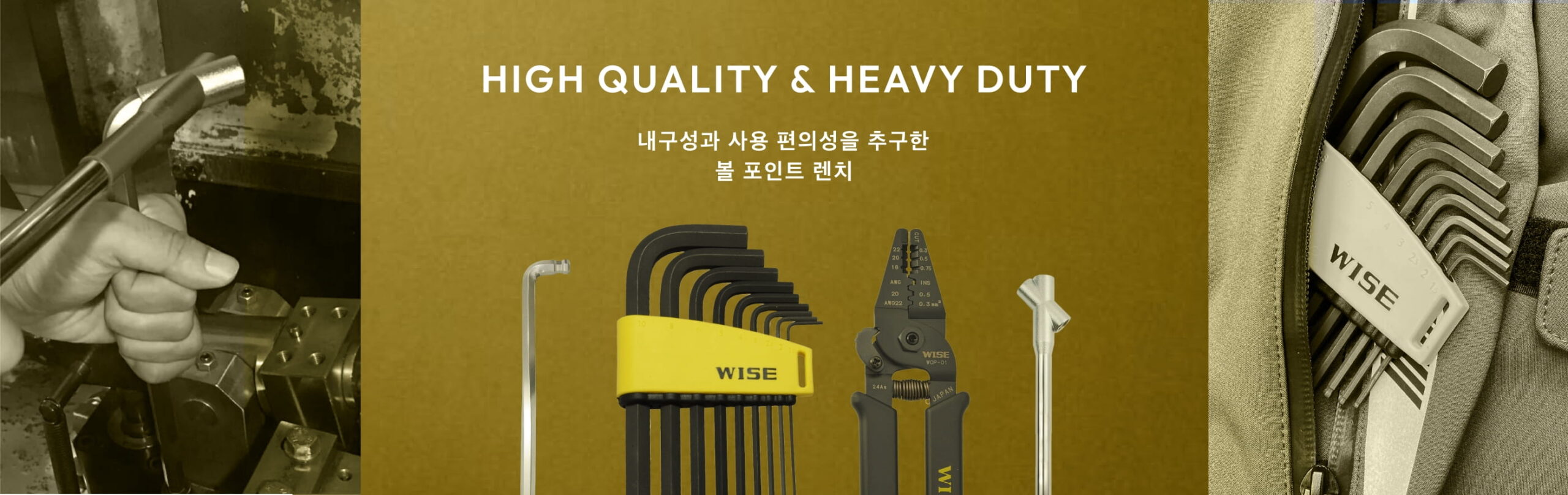 와이즈브랜드는 1952년 창업 이래 사용 재료와 열처리, 표면처리에 집착한 육각 렌치, 볼 포인트 렌치 등의 공구를 제공해 온 작업 공구 브랜드입니다. 특수 크롬 도금으로 뛰어난 내마모성을 발휘하는 제품으로 현장에서 꾸준히 사랑받고 있습니다. 키워드 검색 핸들 렌치 볼 포인트 렌치 육각봉 렌치 특수 렌치 T자형 렌치 기타 WISE catalog 제품 카탈로그는 여기 SNS