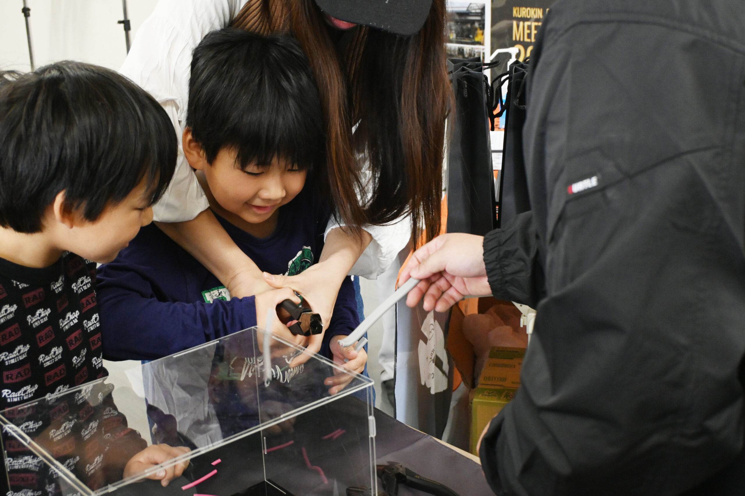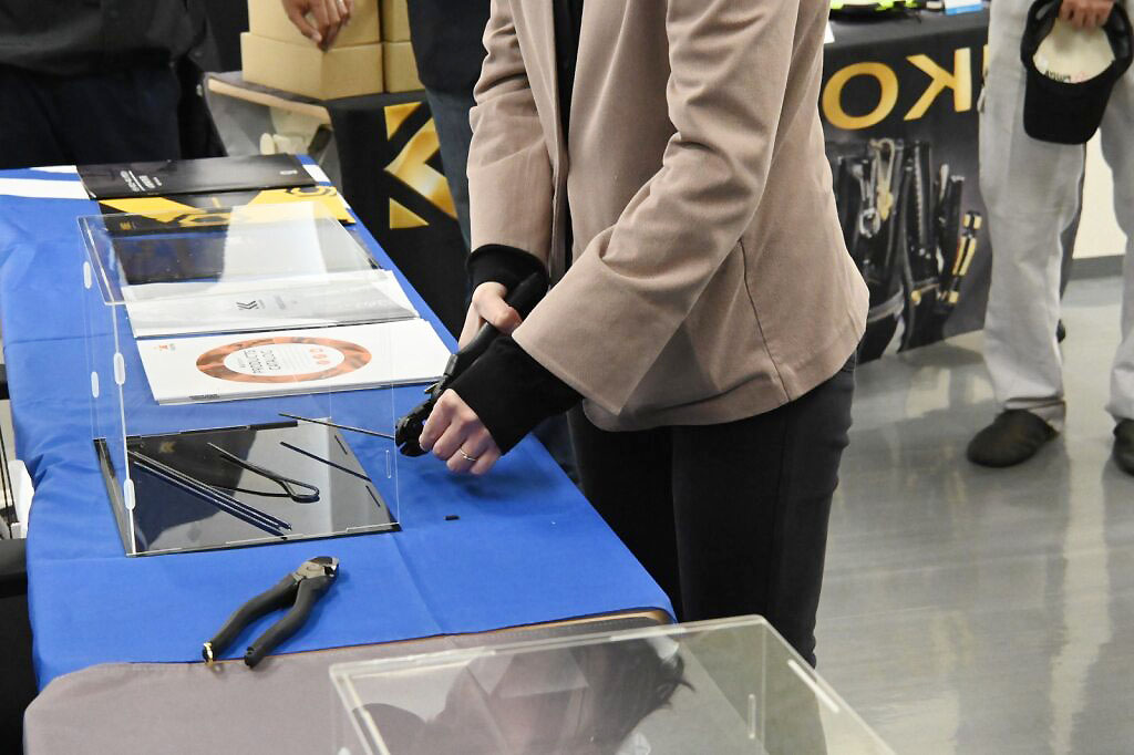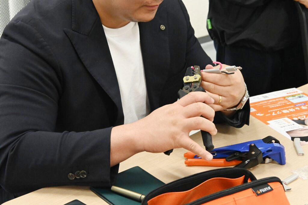 太い8番線を切ったり、ニッパーの種類で切れ味の違いを体験していただけました!