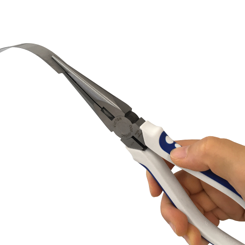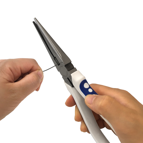 先端部は細く強靭で、くわえ・折り曲げ作業に適しています。耐久性・切断性にも優れています。