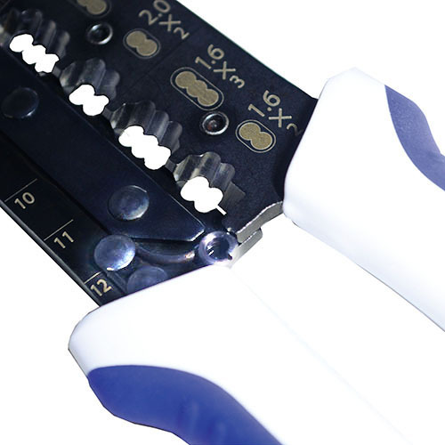 ストリップ時に強く握りすぎて芯材を傷つけるのを防ぐバネ機能付き